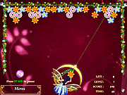 Help the fairy tame her wild, fast-growing garden with your careful aim and a little flower power! Keep the growing garden away by trimming flowers. Shoot flowers to create groups of 3 or more flowers of the same kind; once these groups are created, those flowers are automatically trimmed. Red flowers can trim flowers of any color, and they give you more points. Blinking flowers automatically match the color of the flowers they touch.