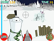 Shoot the monster snowmen as they pop out from hiding. Throw grenades quickly to take out multiple. Mouse - Aim / Shoot. Spacebar - Throw Grenades.