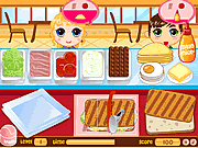 This quick-moving sandwich-building game is the best thing since sliced bread! Fill the customers' orders exactly...and quickly, before they lose patience! First drag bread onto the pink pad. Then drag each ingredient in the exact order requested. To cut the panini, click and drag along the dotted lines. To serve, first drag a blue plate onto the panini, then drag the whole thing to the customer. A customer's order bubble will fill up as his or her patience runs out.