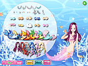 Enter in the deep waters fairy world and dress up this beautiful mermaid in some of her amazing outfits. Choose her tail, top and jewelries as well as a new hairstyle. At the end you can even print your creation and share it with your friends! This game is played with mouse only.