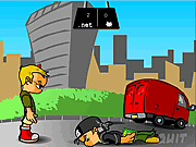 the game is quick-draw Competition. When you hear the announcer yell "GO", quickly hit your key before your opponent hit theirs. If you hit the key before you hear the announcer, you won't be able to throw. Player 1: Spacebar - Throw. Player 2: Shift Keys - Throw.